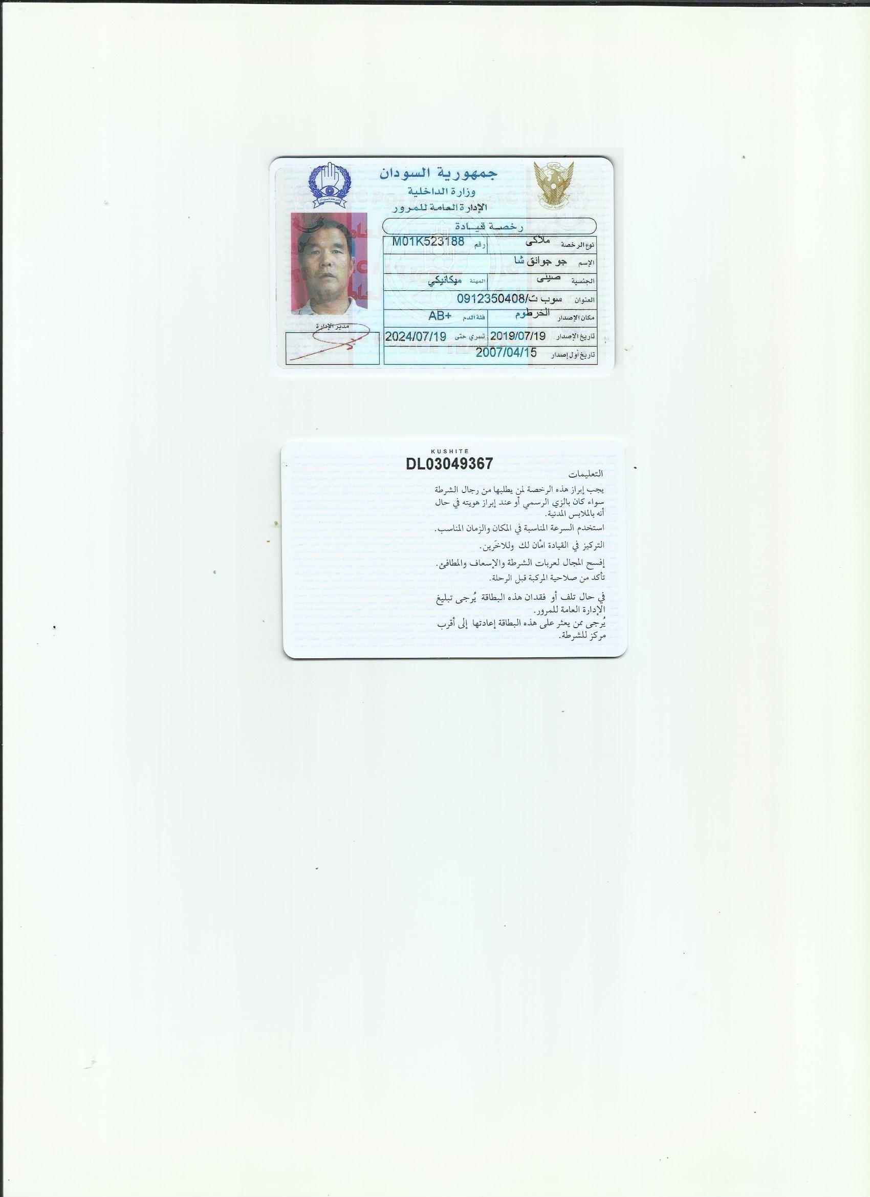 咸陽證件翻譯蓋章 成績(jī)單翻譯 戶口薄翻譯 駕照翻譯 北蘇丹駕照翻譯模版