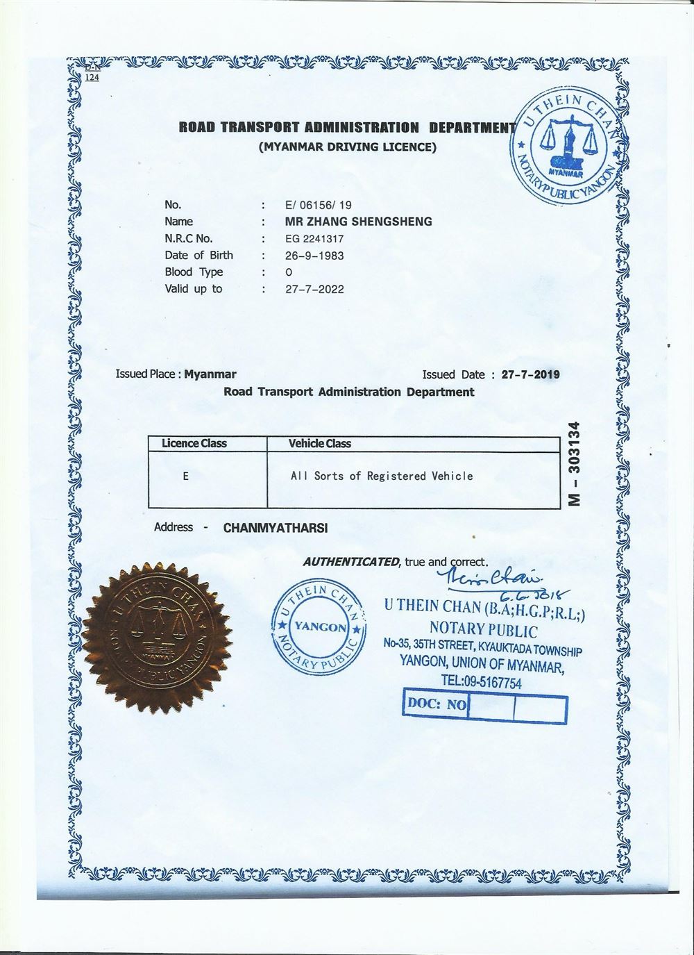 適用證件類型: