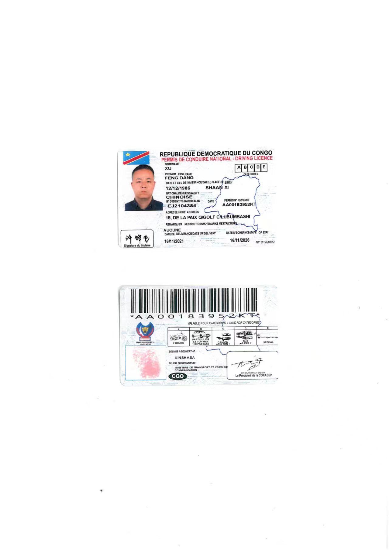 西安市車管所認(rèn)可翻譯機構(gòu)-西安/咸陽/寶雞/渭南/漢中翻譯 剛果金駕照翻譯模版