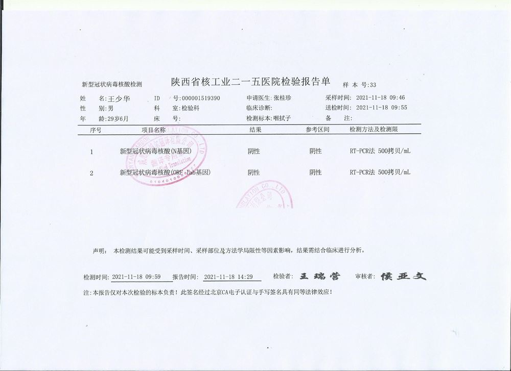 咸陽證件翻譯蓋章 成績單翻譯 戶口薄翻譯 駕照翻譯 咸陽215醫(yī)院 核酸檢測報(bào)告翻譯模版